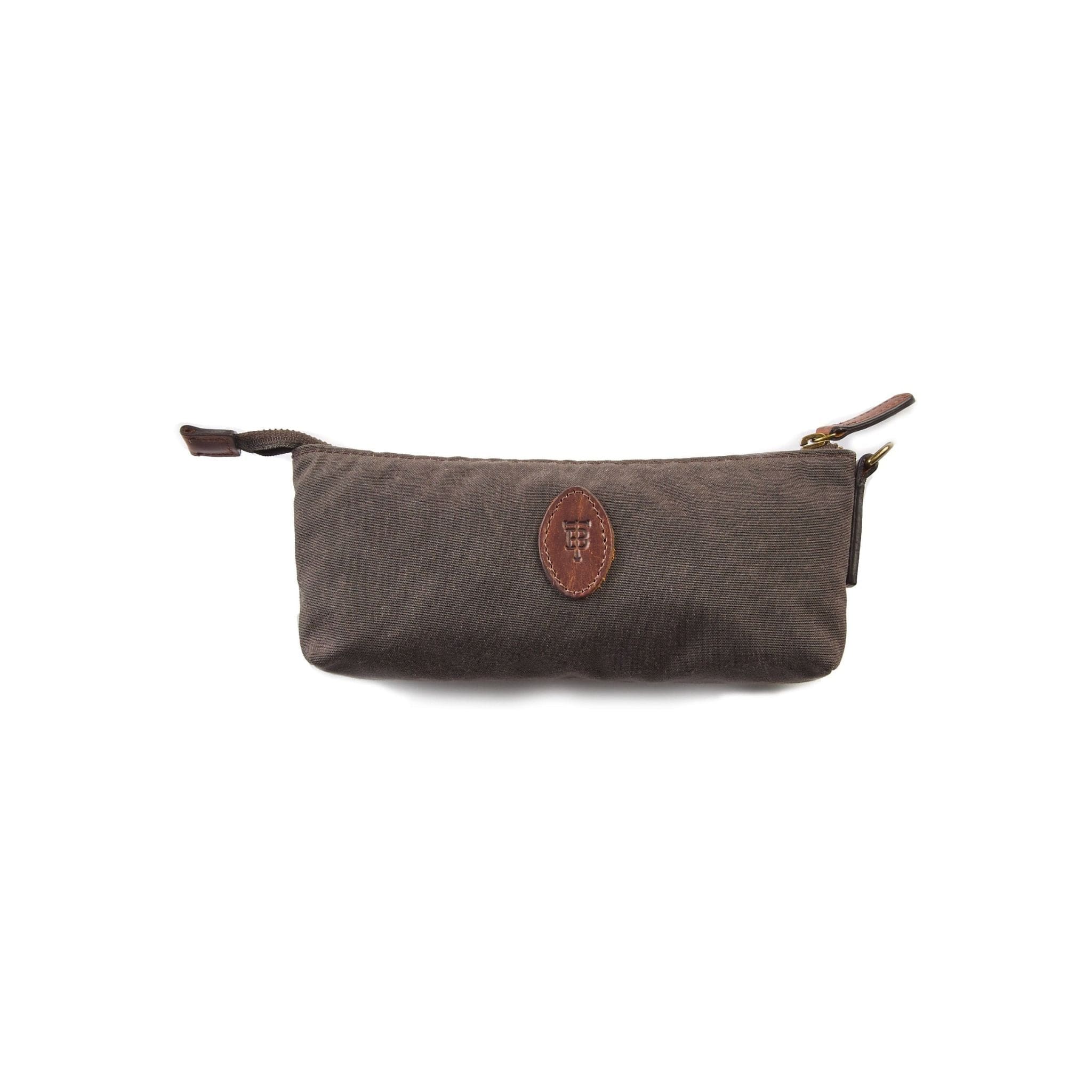 Made with our weatherproof waxed cotton / nylon canvas exterior, our Canvas Banker's Bag helpfully organizes your everyday carry essentials. This canvas money bag is the perfect size for cables, small hand tools, and first aid for the field. Our unique Field Canvas, produced to our specifications, provides the classic look and feel of waxed cotton canvas with the durability and performance of 1000 denier nylon. Lined with a waterproof synthetic interior liner, this canvas money bag will be a great companion for years to come. Complete with antique brass heavy-duty metal zippers and antique brass hardware. Color: Bark.