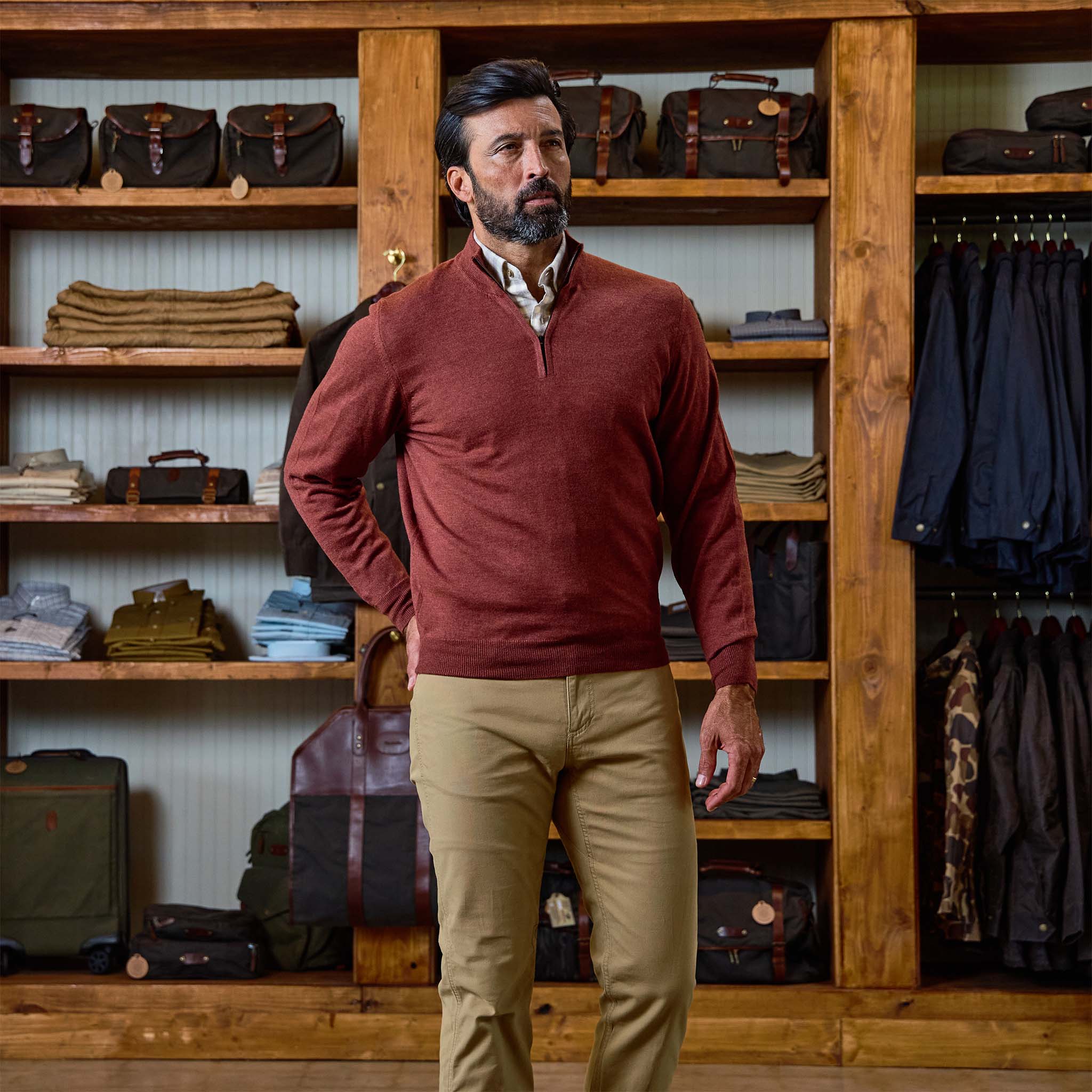 Our York Merino Wool Quarter Zip Sweater for men delivers timeless style with natural performance. Knit from 100% 12-gauge Merino wool, this sweater offers unmatched softness, dependable warmth, and lasting comfort. Known as nature’s performance fabric, Merino is highly breathable and naturally regulates temperature. Wool also retains its insulating properties when wet. Our York Merino wool quarter zip men’s sweaters are seamless with ribbed cuffs, collar, and hemline to seal in warmth with a versatile quarter zip closure. Classic fit. Made in Italy.
